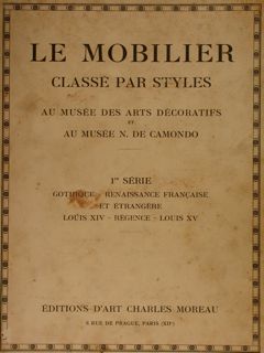 | LE MOBILIER CLASSÉ PAR STYLES au Musée des Arts Décoratifs et au Musée N. De Camondo. 1re Série, Gothique, Renaissance FranÇaise et Étrangére, Louis XIV, Régence, Louis XV. Éditions d’Art Charles Moreau, Paris. - |