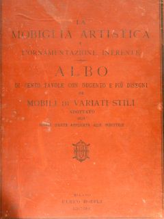 | LA MOBIGLIA ARTISTICA E L’ORNAMENTAZIONE INERENTE. Albo di cento tavole con dugento e più disegni di mobili di variati stili disegnati ed eseguiti da valenti artisti italiani e stranieri... Ulrico Hoepli, Napoli Milano Pisa, s.d. - |