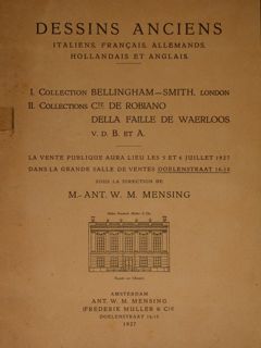 | Dessins anciens italiens, francais, allemands, hollandais et anglais. I. Collection Bellingham-Smith, London. II, Colection Cte De Robiano Della Faille de Waerloos. Amsterda, 5 - 6 juillet 1927. - |