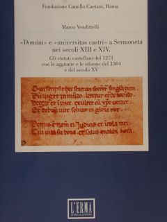 | Fondazione Camillo Caetani. "DOMINI" e "UNIVERSITAS CASTRI" A SERMONETA NEI SECOLI XIII E XIV. Gli statuti castellani del 1271 con le aggiunte e le riforme del 1304 e del secolo XV. - Editore: L'Erma |